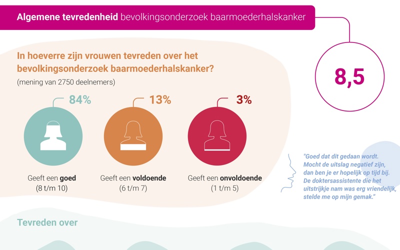 Van de vrouwen die deelnemen aan het bevolkingsonderzoek baarmoederhalskanker geeft 84% een 8 of hog…